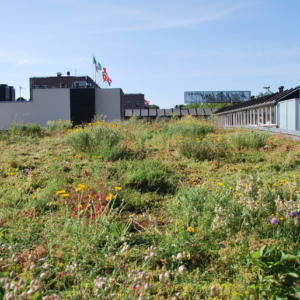 A layered system designed to enhance urban biodiversity by providing habitats for pollinators like bees and butterflies. It features a drainage layer, a substrate layer (minimum 120 mm thick), and a vegetation blanket cultivated with over 20 plant species attractive to insects. Suitable for flat and slightly pitched roofs (up to 15°), this system also offers a lightweight variant with a thinner substrate (minimum 70 mm) and a Sedum-herb mix.